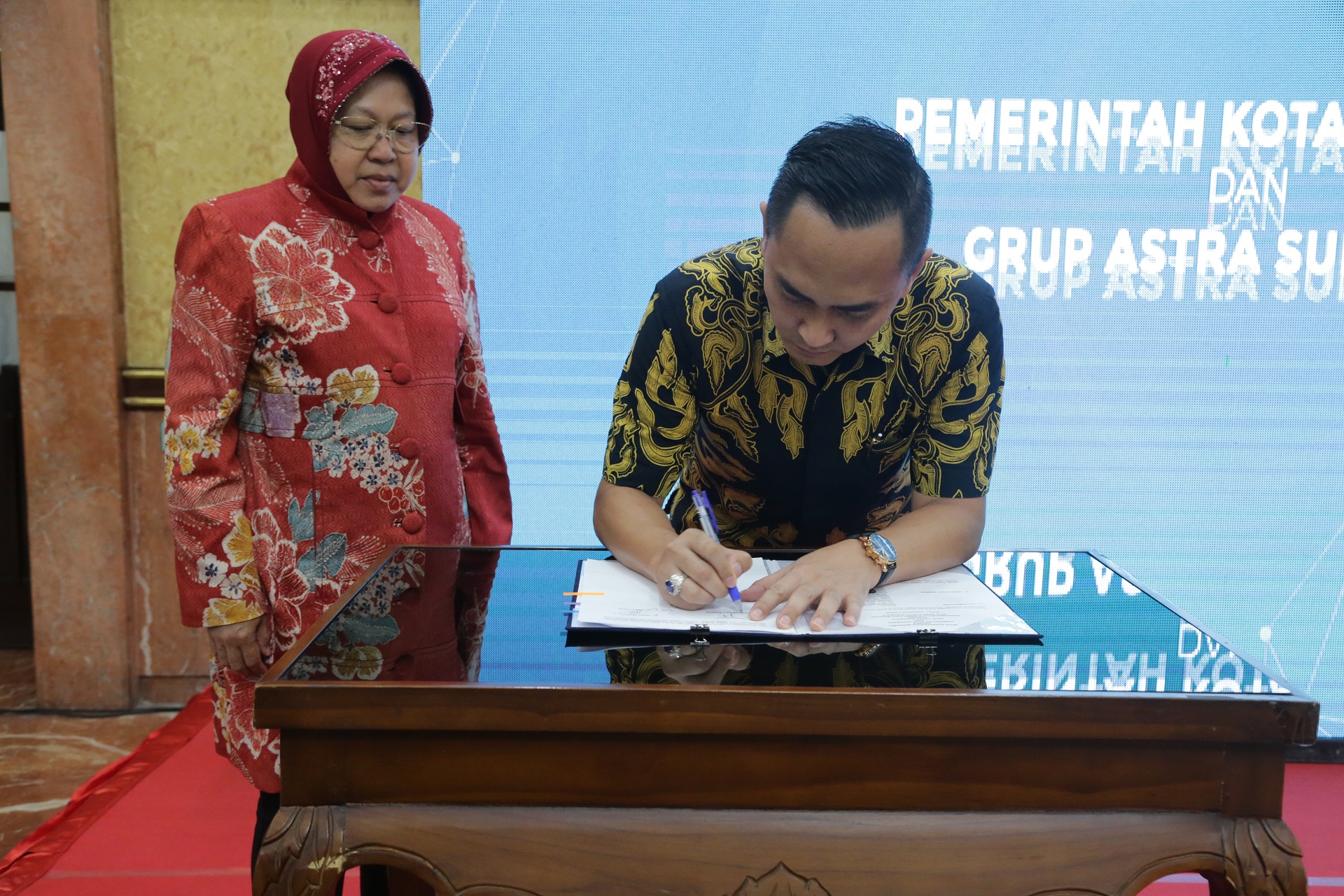 Wali kota Surabaya Tri Rismaharini saat menandatangani kerjasama dengan Astra (JB01)