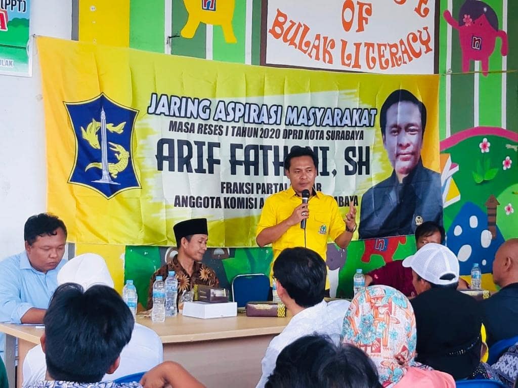 Arif Fathoni, mengatakan dalam reses yang dilakukan di lima wilayah di dapilnya ini yang paling banyak yang dikeluhkan warga masyarakat adalah tidak adanya PJU, padahalkan pengajuan PJU kepada program Musrembang ke Pemkot Surabaya sejak tahun 2016 namun hingga saat ini belum juga terealisasikan.