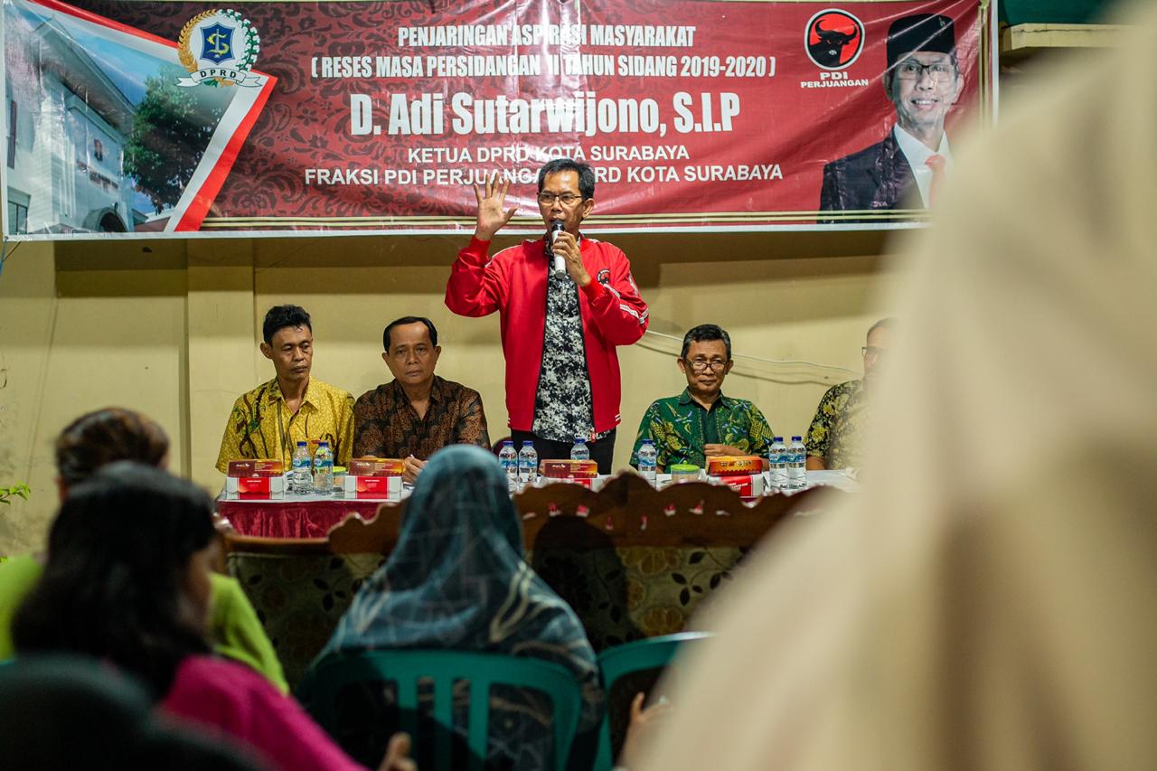 “Usulan pembangunan fisik masih menjadi topik utama dalam reses tahun 2020. Yang sering disebut warga, seperti pavingisasi, PJU, pembenahan saluran air. Hasil reses ini menjadi usulan pembangunan yang dibawa Dewan,” ujar Adi Sutarwijono, Ketua DPRD Kota Surabaya, Kamis (06/02.