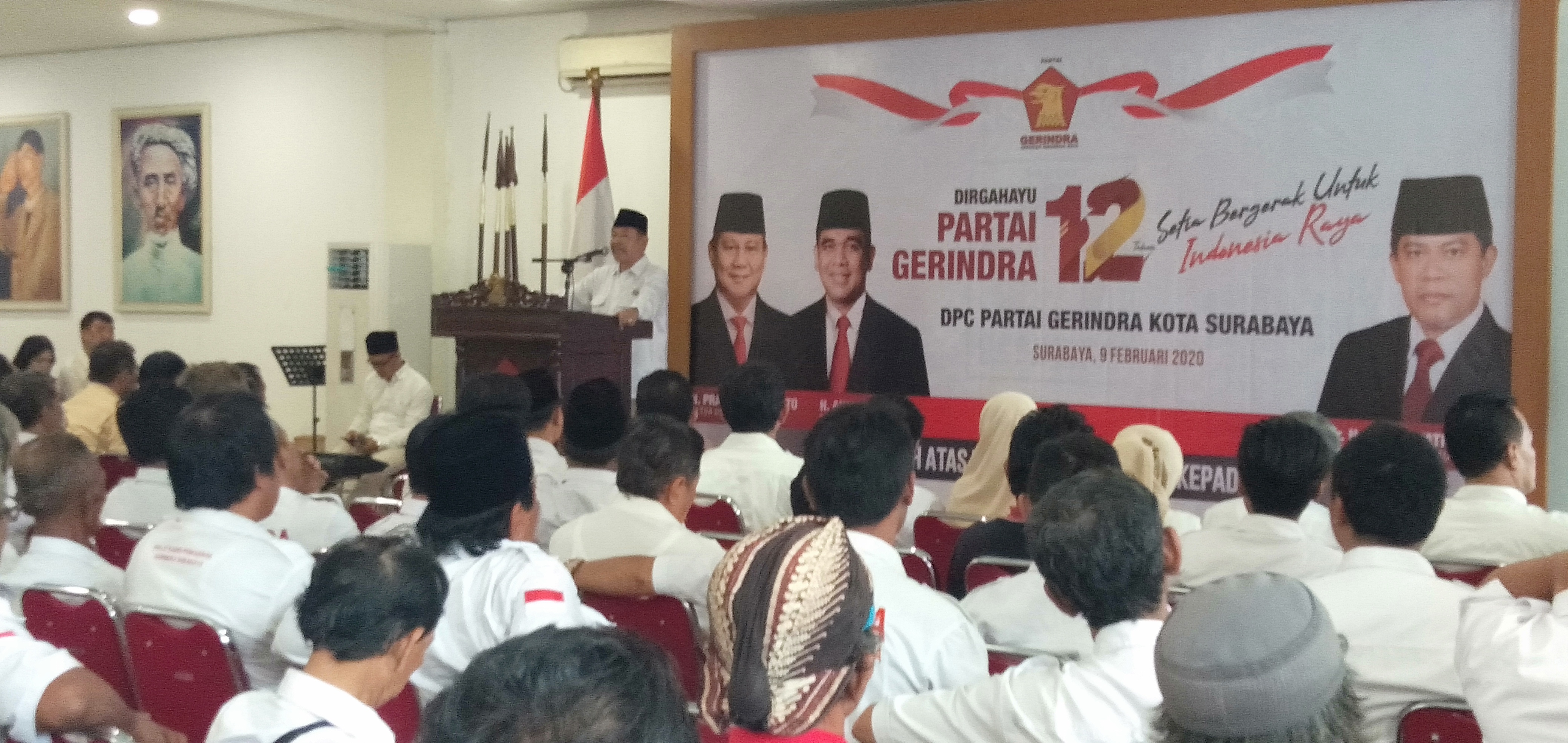 JURNALBERITA.ID – SURABAYA, Dalam perayaan hari jadinya DPC partai Gerindra Surabaya ke 12 sosialisasikan bakal calon Wali kota Surabaya 2020. Acara yang diselenggarakan di kantor Dewan Pimpinan Cabang partai Gerindra jalan Gayungsari Barat, Surabaya, Minggu (09/02).