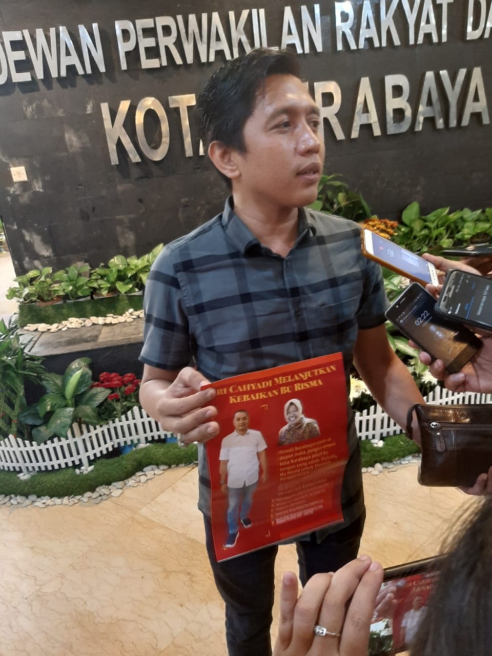JURNALBERITA.ID – SURABAYA,Wakil Ketua Fraksi PKB Surabaya Mahfudz dibuat geram dengan adanya selebaran yang diduga diedarkan oleh Kepala Bappeko Surabaya Eri Cahyadi. Pasalnya dalam selebaran tersebut berisikan kampanye untuk memilih dia pada Pilwali Surabaya tahun 2020 ini.