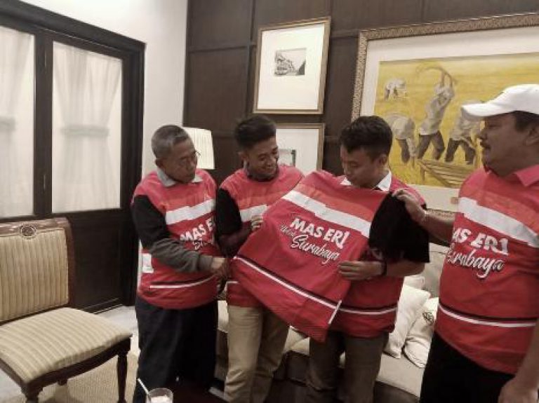 “Kami desain sendiri dan cetak sendiri. Tidak hanya brosur. Warga yang mendorong Pak Eri juga telah membuatkan atribut kaus bergambar beliau,” tambah Ilham Ramadani, salah satu ketua RT di Krembangan.