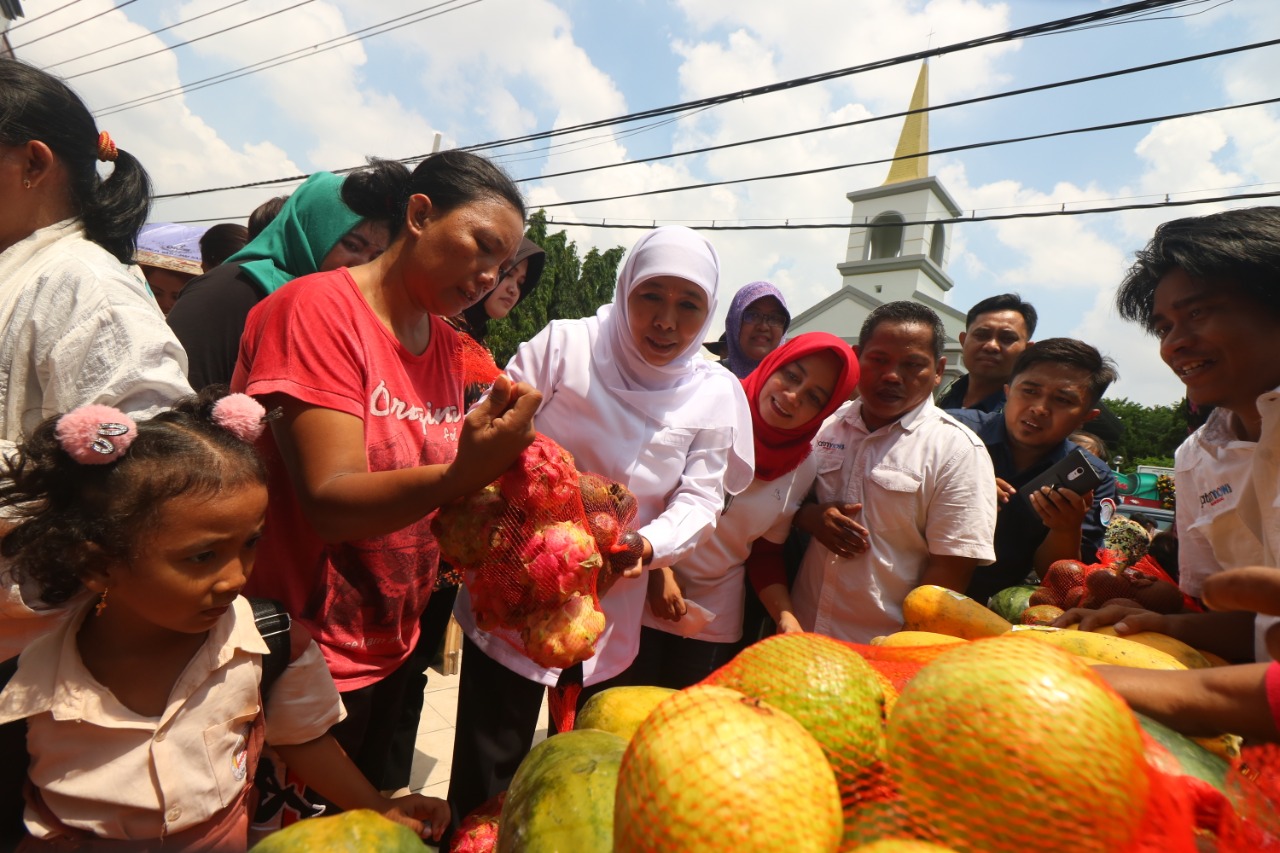 Gubernur Jawa Timur, Khofifah Indar Parawansa saat membuka pasar murah tersebut langsung diserbu ratusan warga. Dalam kesempatan itu, Gubernur Khofifah sempat memborong gula pasir putih 300 kilogram yang dijual dan dibagi gratis ke mereka.