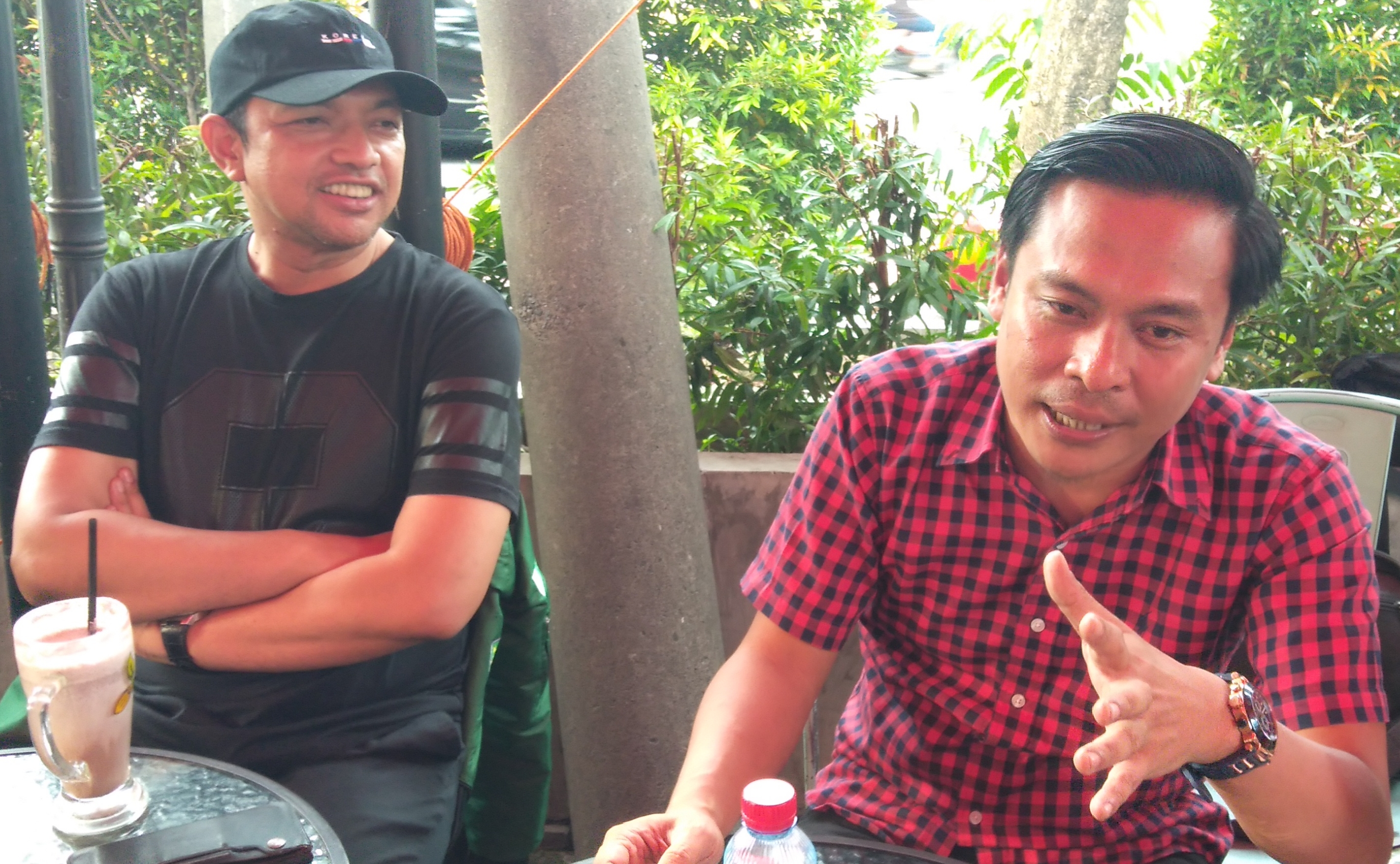 Zahrul Azhar Asumta (Gus Hans) didampingi Ketua fraksi Golkar DPRD Surabaya, Arif Fathoni saat menyapa awak media (JB01)