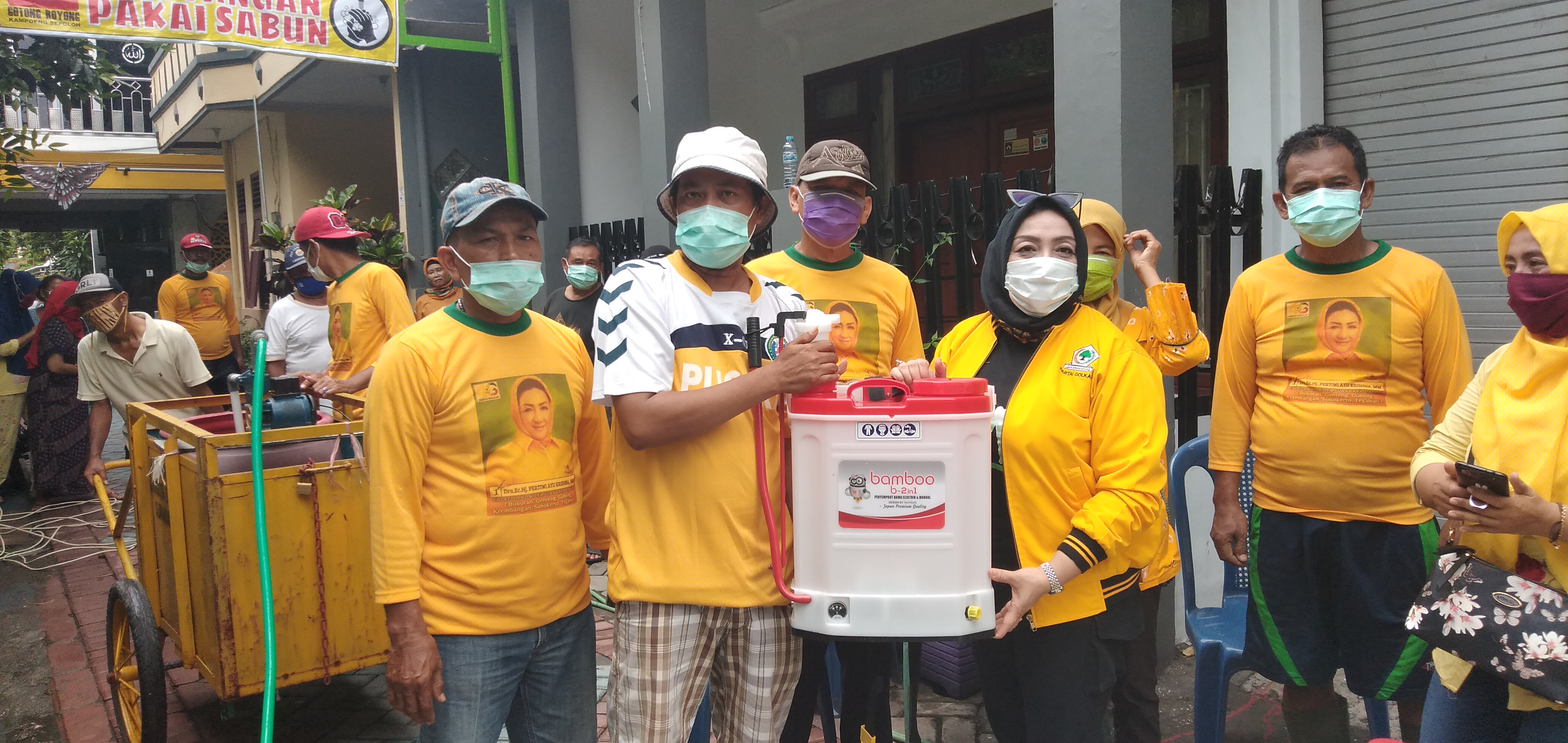 JURNALBERITA.ID – SURABAYA, Upaya keras memerangi penyebaran virus corona terus dilakukan oleh Ketua Komisi A DPRD kota Surabaya, Pertiwi Ayu Krishna. Penyemprotan yang dilkukan bersama warga Sepoloh-Gadukan Utara, RT 10, RW 05 Kecamatan Morokrembangan, Ayu sapaan Ketua Komisi A juga turun tangan bantu warga setempat. Penyemprotan yang berlangsung sejak pukul 09.30 WIB hingga selesai jam 11.30 WIB.