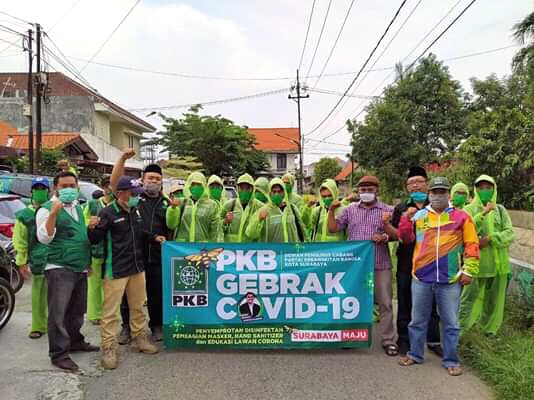 JURNALBERITA.ID – SURABAYA, Dewan Pimpinan Cabang (DPC) Partai Kebangkitan Bangsa (PKB) melakukan penyemprotan lingkungan perumahan warga di kampung Pucang Sewu, Kecamatan Gubeng Surabaya. Upaya yang dilakukan oleh PKB untuk memutus mata rantai penyebaran covid-19.