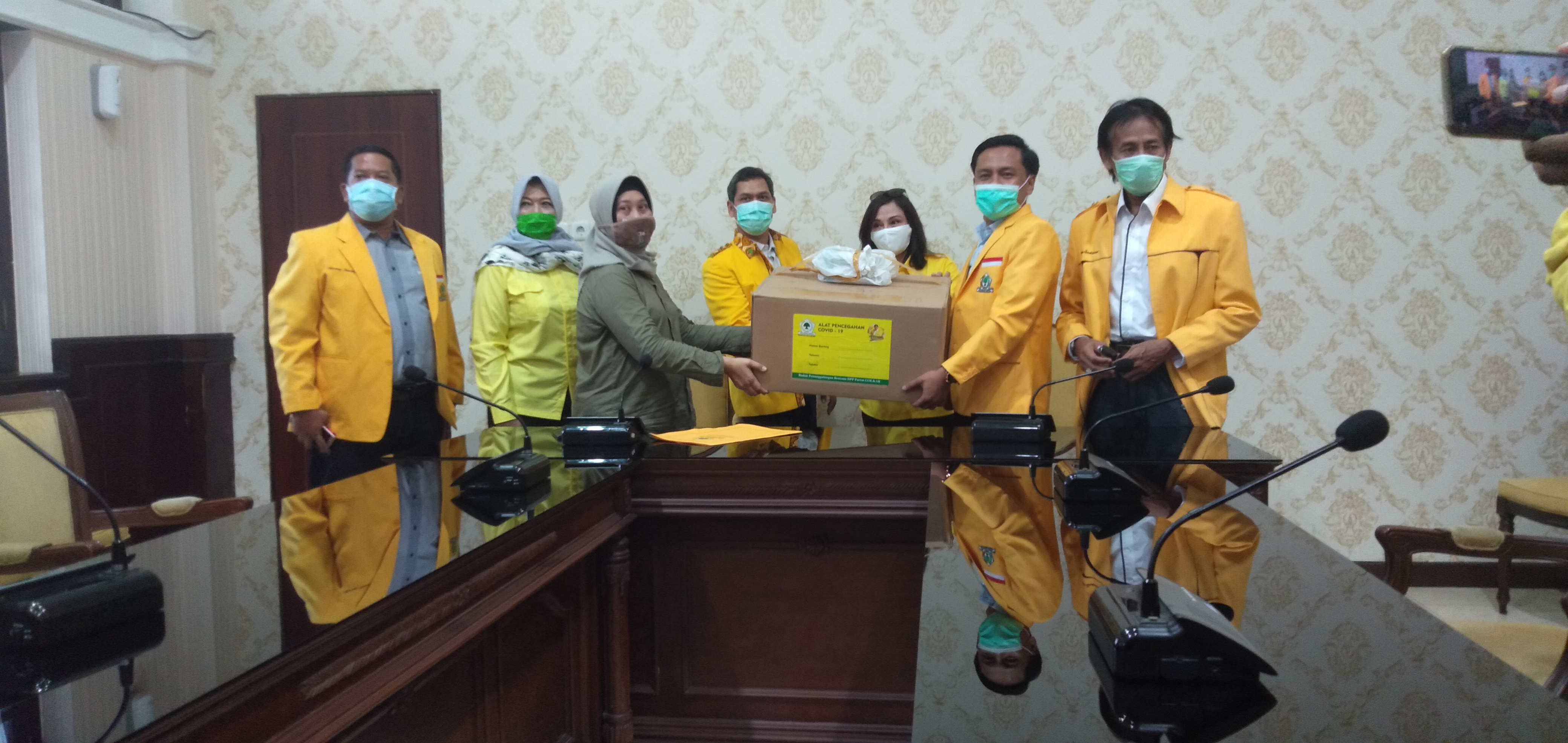 JURNALBERITA.ID – SURABAYA, Bantuan medis guna penanganan wabah Covid19 kepada Pemerintah Kota (Pemkot) Surabaya terus mengalir. Rabu (08 /04) DPD 2 partai Golkar kota Surabaya menyalurkan bantuan berupa alat perlindungan diri (APD). Ratusan lebih APD dan masker serta sabun cuci tangan, diserahkan ke Pemkot di Balaikota Surabaya melalui Sekretaris dinas Kesehatan kota Surabaya, Nanik Sukristina.