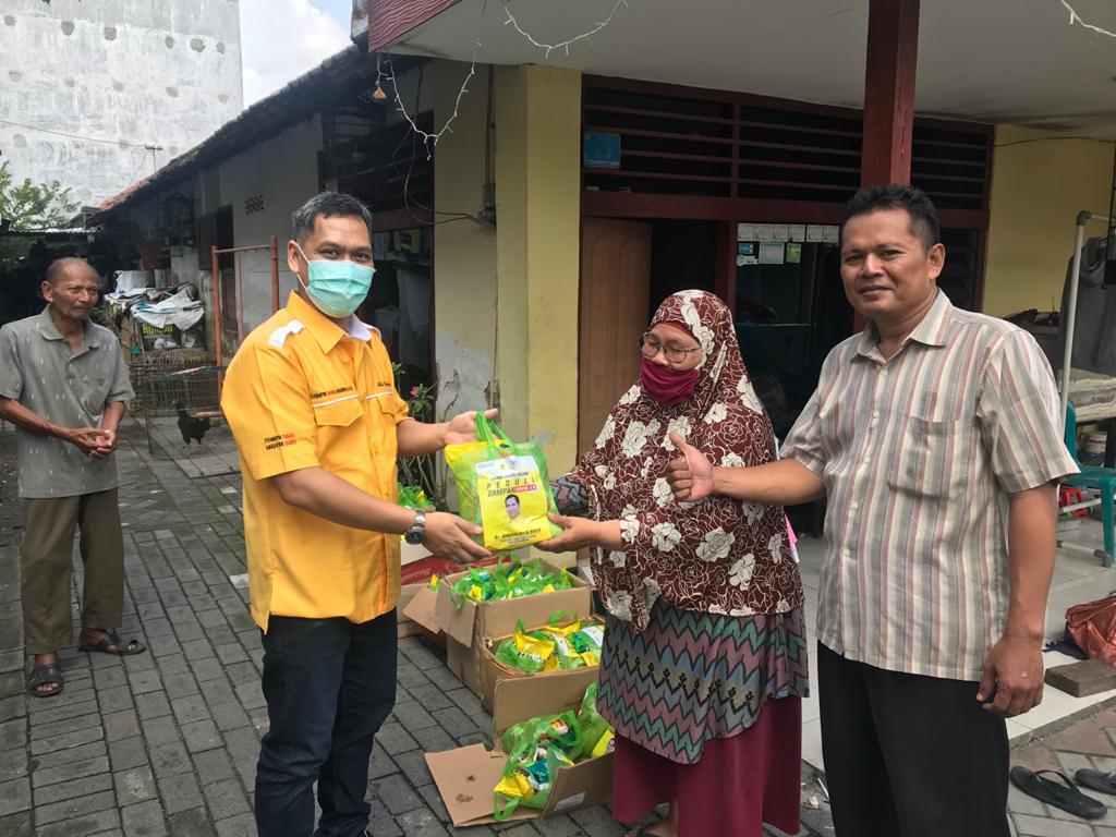 Untuk membantu meringankan beban ekonomi masyarakat warga kota surabaya, fraksi partai Golkar DPRD kota Surabaya melakukan upaya untuk membantu beban masyarakat dengan membagikan sembako, paparnya.
