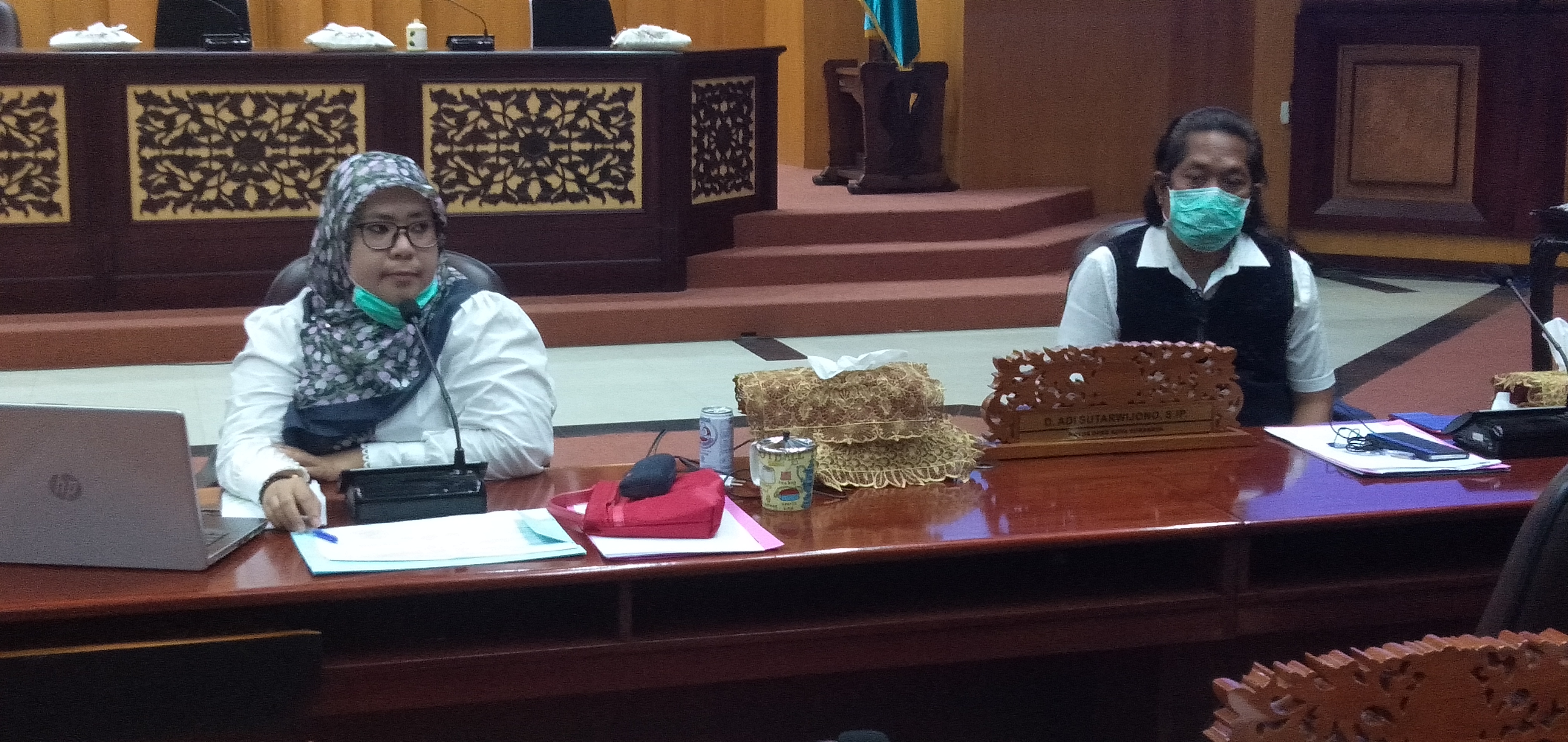 Wakil ketua Komisi A DPRD Surabaya, Camelia Habiba didampingi Sekretaris Komisi, Budi Leksono saat memimpin hearing dengan tim Gugus Tugas pananganan Covid-19 Pemkot Surabaya (JB01)