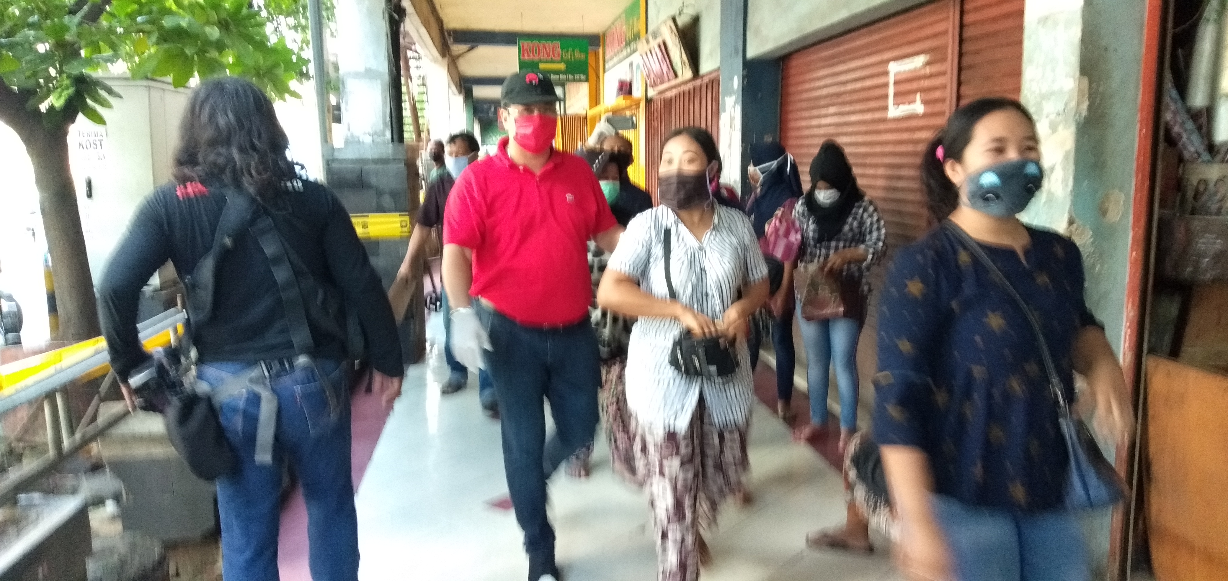 “Tapi kita patut bersyukur, bahwa di Pasar Kapasan sampai hari ini tidak terjadi penyebaran Covid-19,” katanya.