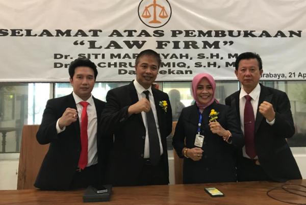 JURNALBERITA.ID – SURABAYA, Kantor Law Firm yang berkedudukan di jalan Ngakglik 48 B, Kecamatan Tambaksari Surabaya resmi dibuka Siti Marwiyah, S.H, M.H, Dr. Bachrul Amiq, S.H,M.H dan Rekan, Selasa (21/04). Diketahui Siti Marwiyah adalah adik kandung dari MenkoPolhukam, Prof. Dr Mahfud MD.