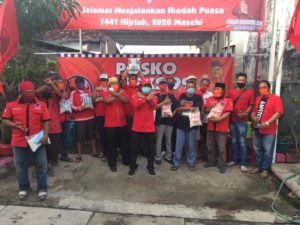 JURNALBERITA.ID – SURABAYA, Ditengah pandemi covid-19, politisi PDIP yang juga sebagai Wakil ketua DPC PDIP serta Sekretaris Komisi A DPRD kota Surabaya, Budi Leksono berbagi takjil buka puasa bagi pengguna jalan dan warga kampung. Kegiatan yang dilakukan bersama relawan Bulek sebagai bentuk kepedulian antar sesama di bulan suci Ramadan 1441 H tahun ini, Minggu yang lalu (26/04) menjelang adzan Magrib.