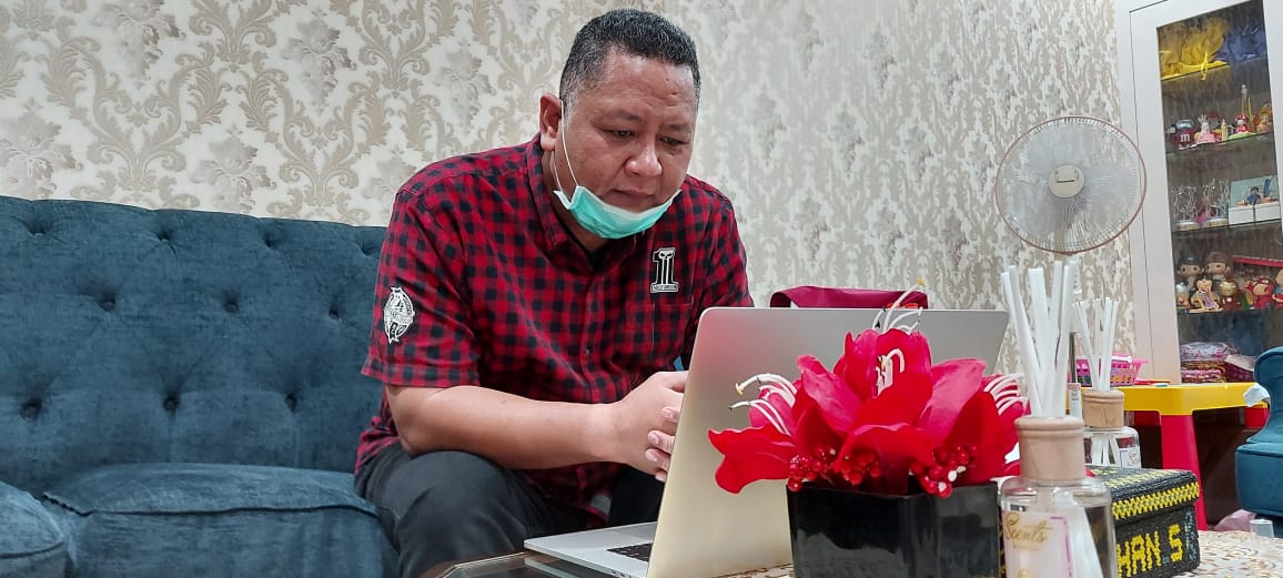 Seminar secara online ini diikuti oleh Whisnu dari kediaman pribadinya kawasan Perumahan Pakuwon City Surabaya, Minggu (03/05).