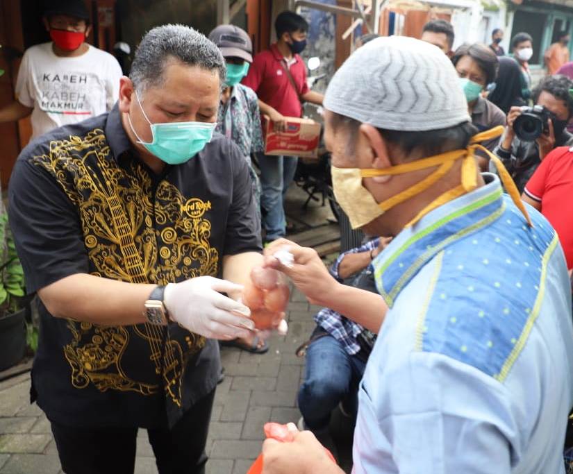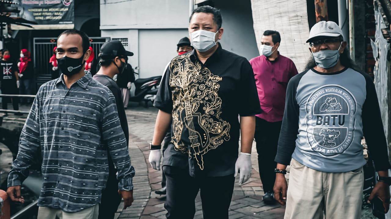 Wawali Kota Surabaya, Whisnu Sakti Buana saat sambang perkampungan di tengah pandemi Covid-19 (*)