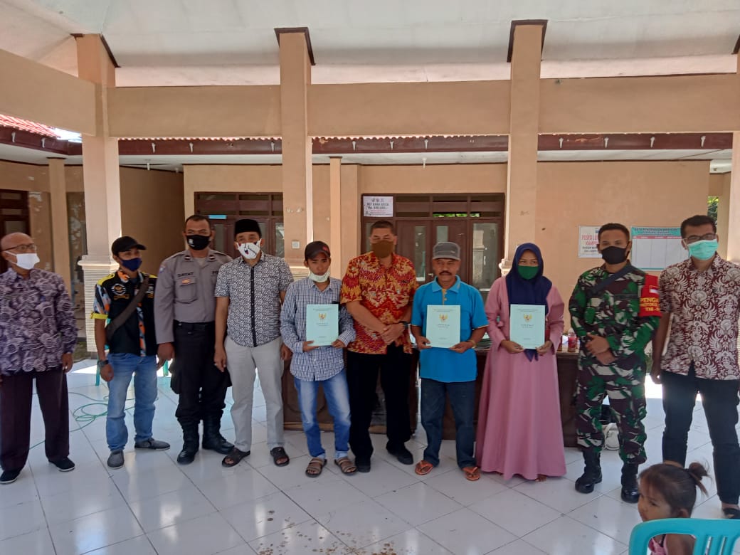 Penyerahan sertifikat itu berlangsung di Balai Desa Taddan, Kecamatan Camplong, Kamis (23/07). Hadir dalam acara tersebut Kepala Desa Taddan dan pihak BPN Sampang, didampingi Kapolsek Camplong dan Koramil Camplong, Kabupaten Sampang.