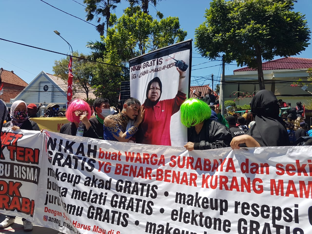 Berdasarkan pantauan data yang dihimpun, ratusan massa yang datang dan melakukan aksi di Balai Kota Surabaya antara lain wedding oragnizer, event organizer, persewaan terop/tenda, sound system, artis, musisi, reog, jaranan, MC, dekoration 300. (JB01 )