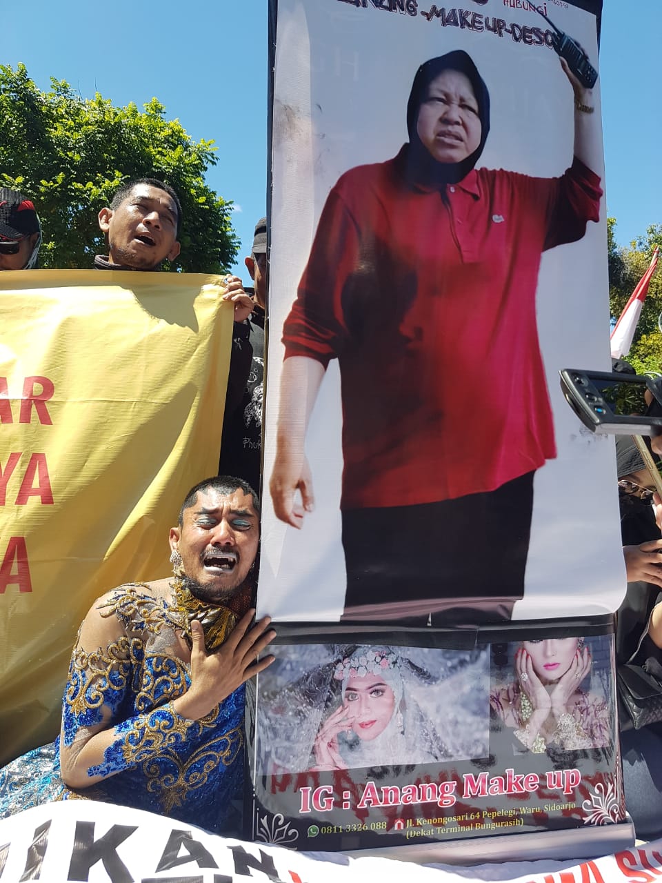 “Kami datang ke Balai Kota Surabaya, agar Bu Risma mencabut Perwali 28 dan 33. Selain itu, Bu Wali Kota untuk bisa memberikan ijin pelaksanaan hajatan dan Hiburan, serta pagelaran seni budaya lagi,” ujar Agus Barera, Humas APSS.