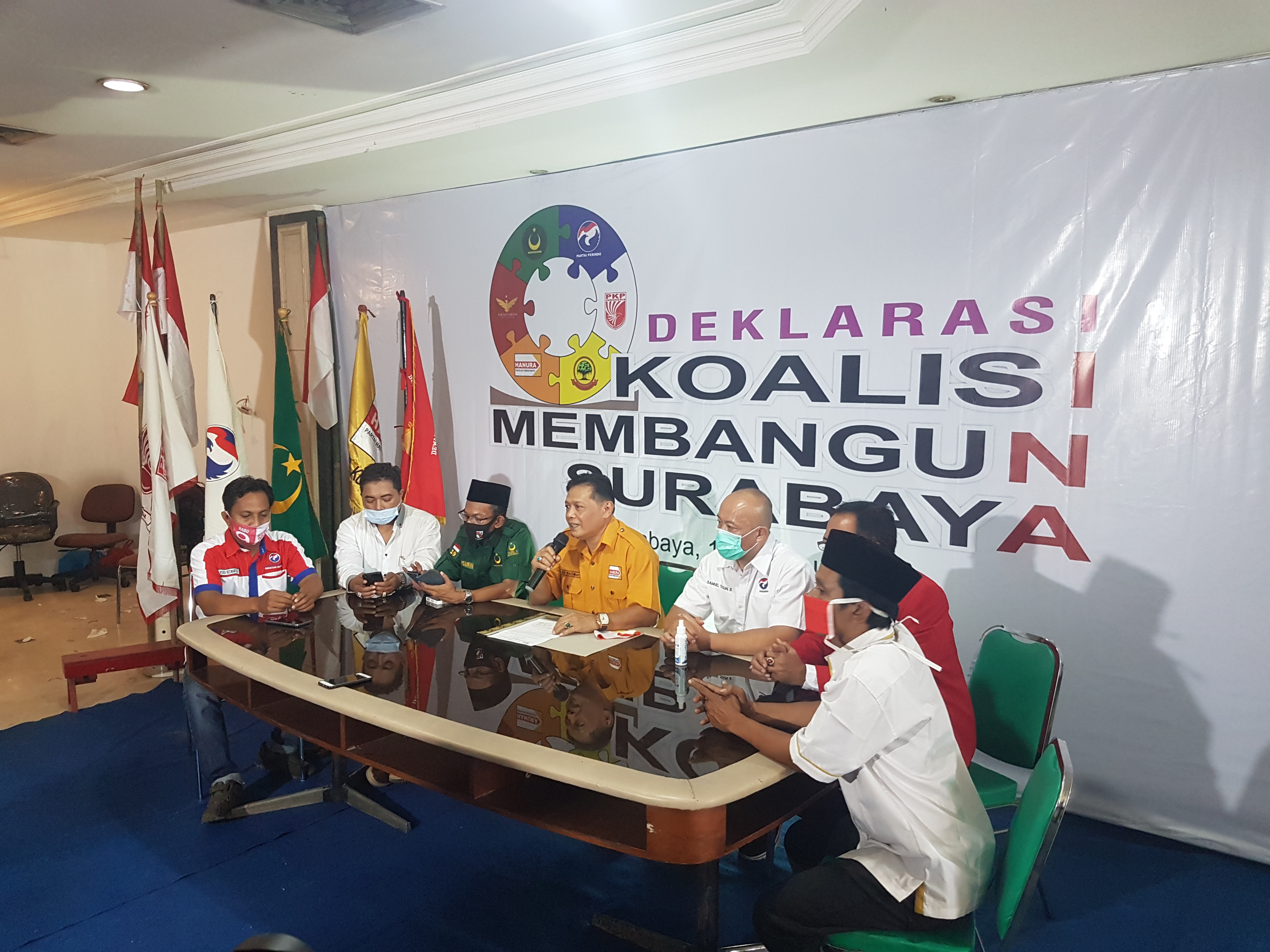 JURNALBERITA.ID – SURABAYA, Geliat pemilihan walikota (pilwali) tak hanya ditunjukkan partai politik (parpol) yang memiliki kursi di parlemen. Parpol yang tak memiliki kursi juga ikut menentukan keberhasilan Pemilukada, Rabu (19/8) parpol yang tak memiliki kursi di dewan membentuk sebuah koalisi yang disebut Koalisi Membangun Surabaya (KMS).