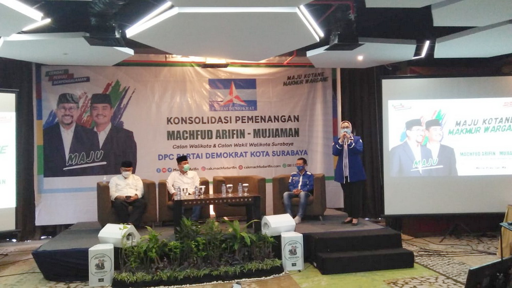 Sementara itu dalam acara konsolidasi pemenangan paslon MAJU sebagai calon Walikota dan Wakil Walikota Surabaya dihadiri 31 PAC Partai Demokrat Se-Surabaya.