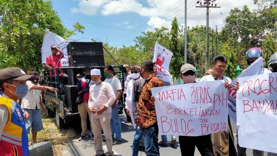 JURNALBERITA.ID – PAMEKASAN, Puluhan Massa Yang mangatas namakan Komunitas Monitoring Dan Advokasi (KOMAD) Dan LSM Gempar menggelar unjuk rasa di depan Kantor Bulog Sub Divre Madura, Jl Raya Panglegur, Selasa (13/10/2020).