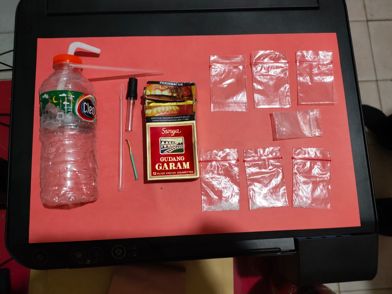 Saat penggeledahan ditemukan, 3 plastik klip berisi sabu yang belum diketahui beratnya.  Empat plastik klip kosong, satu alat bong,  satu buah sendok takar dari sedotan,  satu buah sumbu korek dan satu bungkus rokok serta pipet, satu buah HP merk Samsung, beber Miftahol.