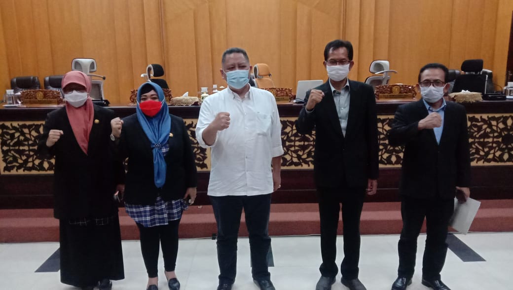 Plt Wali Kota Surabaya, Whisnu Sakti Buana didampingi Ketua DPRD Surabaya, Adi Sutarwijono dan Wakil Ketua DPRD Surabaya, AH Thony, Laila Mufidah dan Reni Astuti (*JB01)