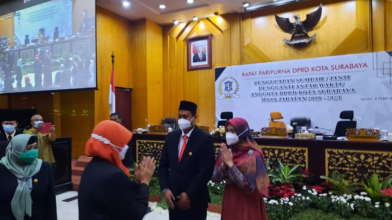 Pelantikan tersebut berdasarkan Surat Keputusan (SK) Gubernur Jawa Timur nomor 171.436/106/011.2/2021 dan dilaksanakan di Ruang Paripurna Gedung DPRD pada Senin 8 Februari pukul 10 pagi.