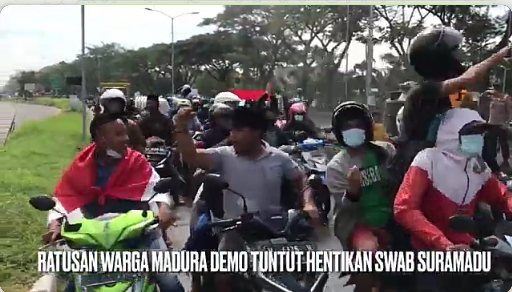 Perwakilan pengunjuk rasa mengatakan, syarat SIKM adalah tes swab. Syarat itu yang tidak dikehendaki warga Madura.