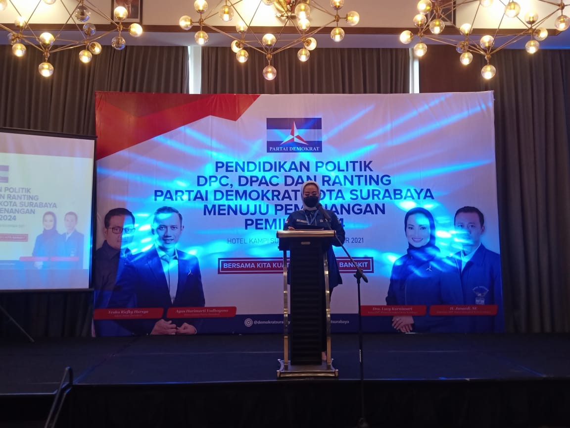 Ketua DPC artai Demokrat Kota Surabaya Lucy Kurniasari saat membuka acara pendidikan politik untuk kader Demokrat Surabaya