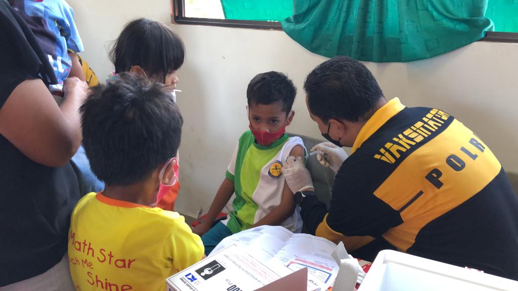 JURNALBERITA.ID – BATAM, Polda Kepulauan Riau (Kepri) menggelar vaksinasi presisi di dua lokasi yakni bertempat di Sekolah Dasar Shabilla Batam Villa Pesona Asri dan SDN 016 Sagulung. Sasaran vaksinasi kali ini diperuntukkan bagi anak sekolah usia 6 – 11 tahun.