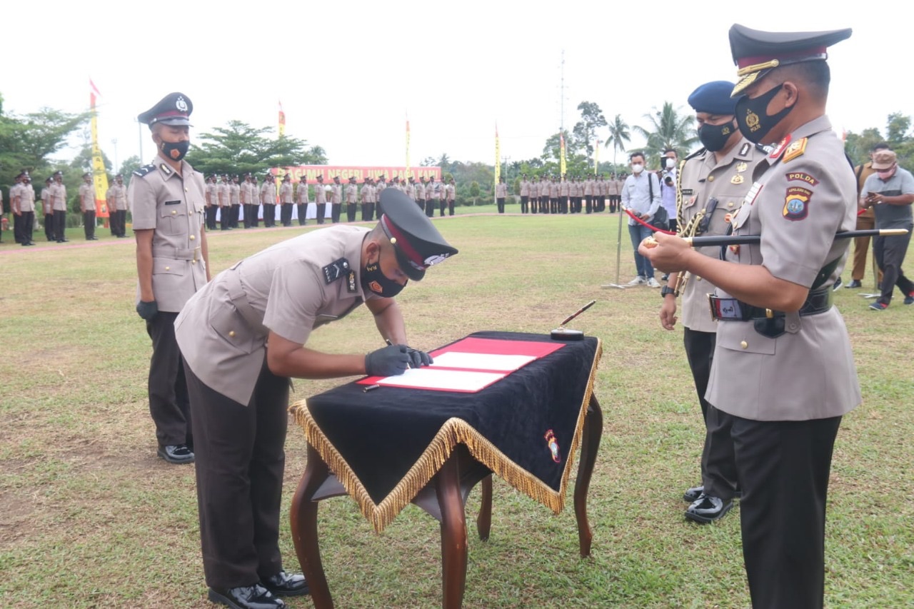 Pada kesempatan tersebut Kapolda Kepri Irjen Pol Dr. Aris Budiman, M.Si membacakan amanat Kalemdiklat Polri Komjen. Pol. Prof. Dr. H. Rycko Amelza Dahniel, M.Si.
