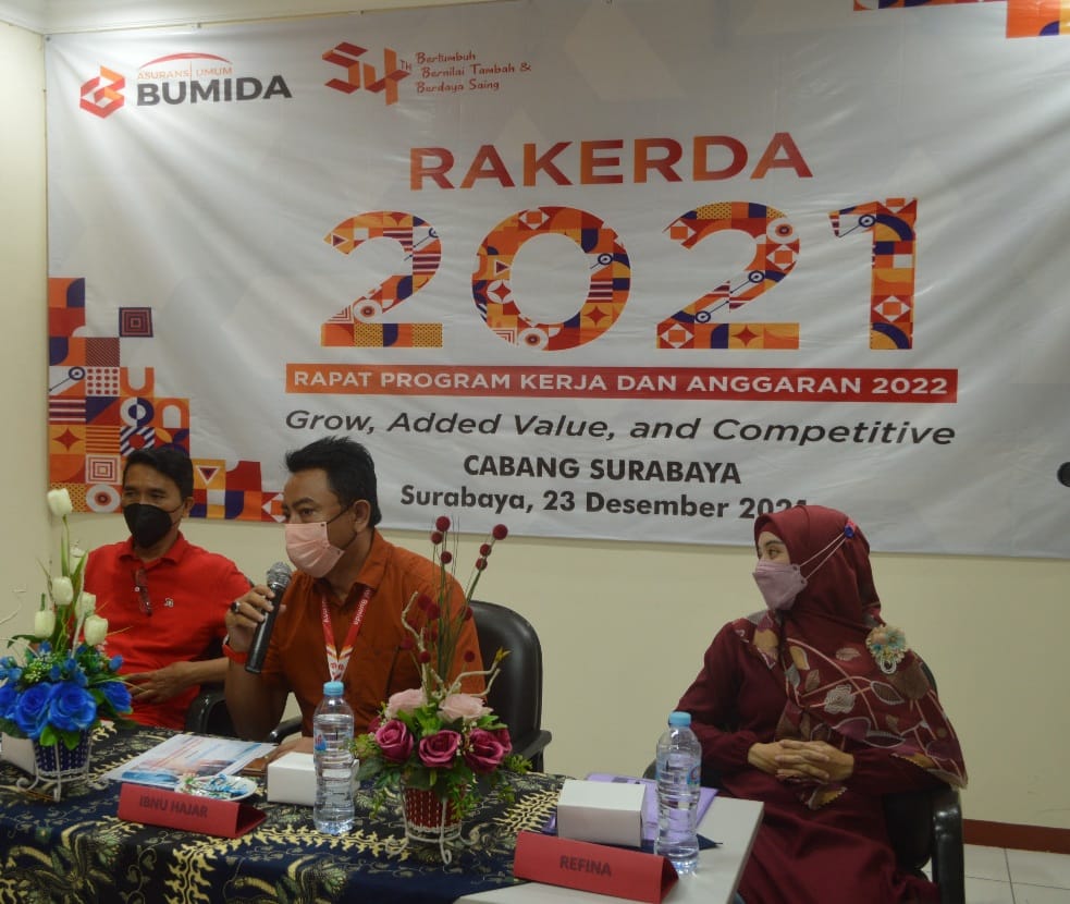 JURNALBERITA.ID – SURABAYA, Perusahaan asuransi umum Bumida melaksanakan Rapat Program Kerja Daerah (Rakerda) tahun 2021, bertempat di kantor Bumida cabang Darmo Surabaya, jalan Raya Darmo, Surabaya, pada Kamis (23/12/2021).