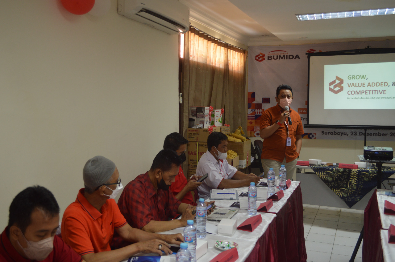 Dalam sambutannya, Ibnu Hajar menyampaikan, pihak managemen mengucapkan banyak terima kasih atas partisipasi produksi yang telah diberikan oleh mitra kerjanya (sales force, red). Secara performa Bumida cabang Surabaya mengalami pertumbuhan, walaupun pertumbuhan itu tidak begitu signifikan.