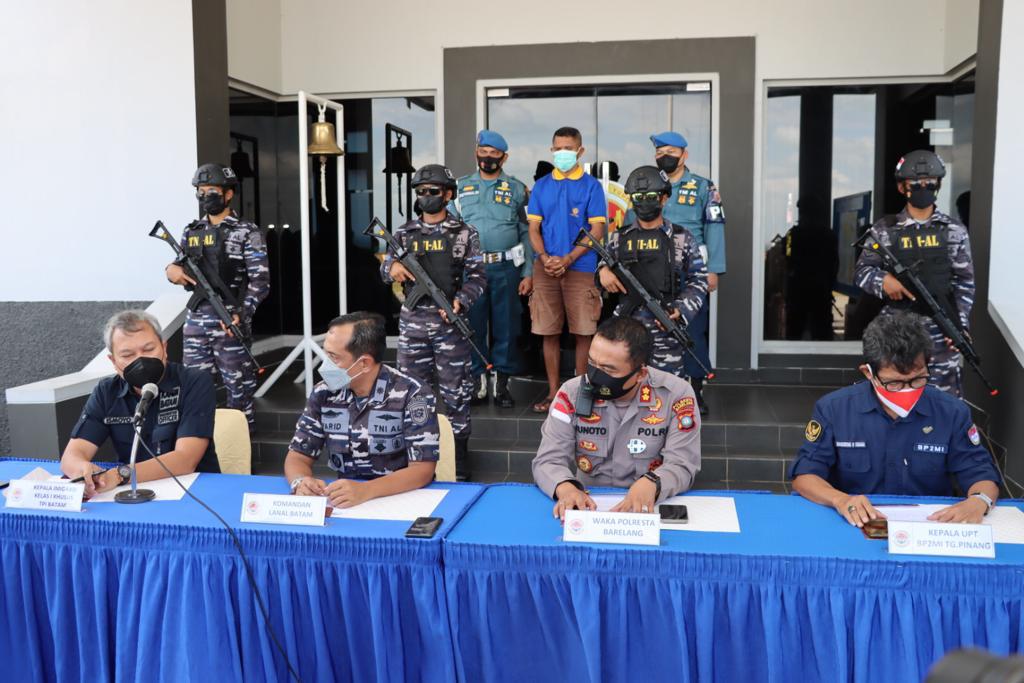 JURNALBERITA.ID – BARELANG Lanal Batam menggelar konferensi pers, Satgas Jalayudha-22 Lanal Batam Berhasil Gagalkan Upaya Pengiriman PMI ( Pekerja Migran Indonesia) ilegal tujuan Malaysia yang di Pimpin oleh Danlanal Batam, Kolonel Laut (KH) Farid Marut, S.H, M.H dampingi oleh Waka Polresta Barelang AKBP Junoto, S.I.K., Kepala Imigrasi Kelas I Khusus TPI Batam, Kepala UPT BP2MI Kepri, Bpk Mangiring Hasiholan Sinaga bertempat di Mako Lanal Batam Tanjung Sengkuang, Batu Ampar, Kota Batam, Jumat (21/01/2022)