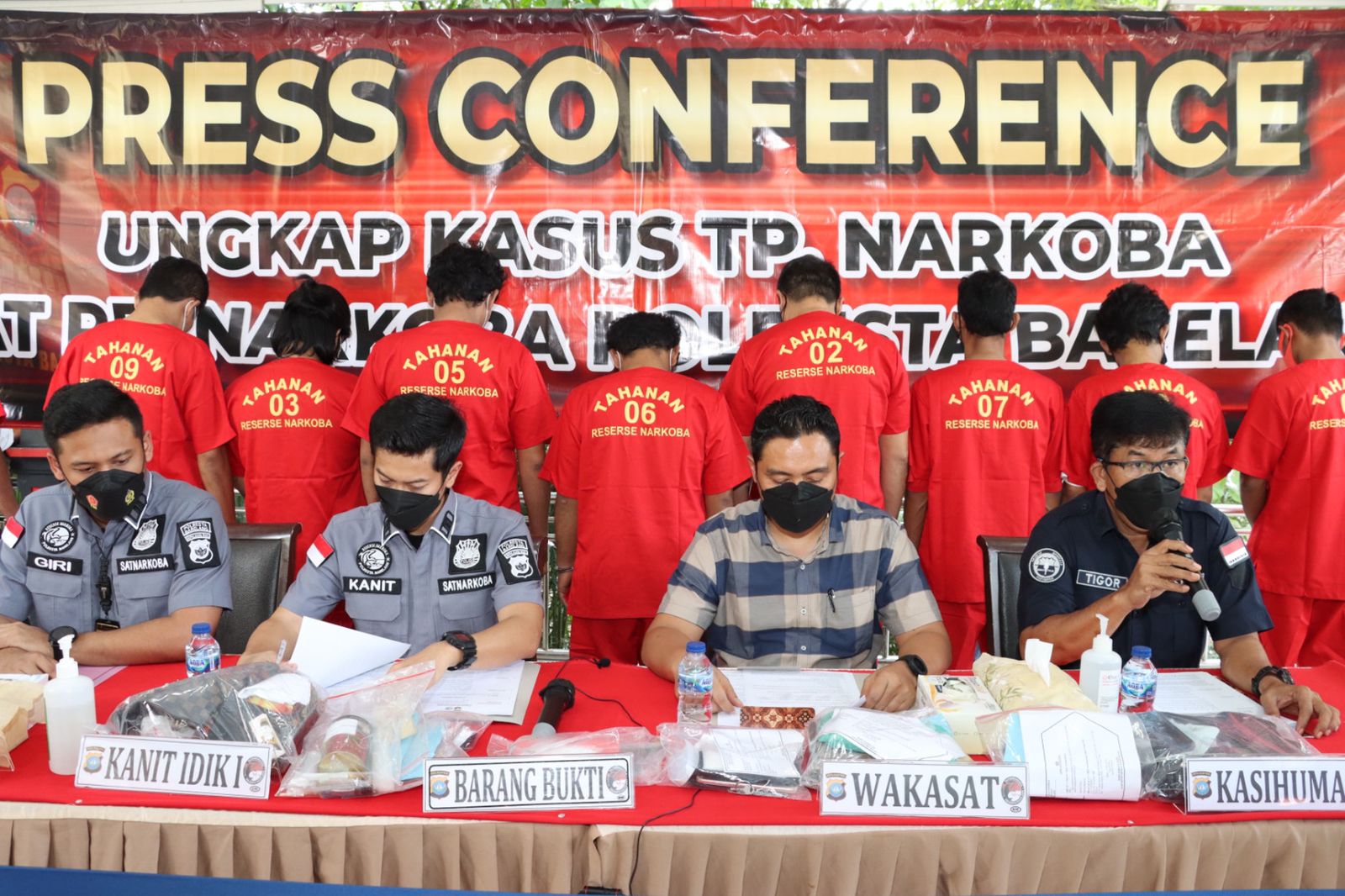 JURNALBERITA.ID – BARELANG, Satuan Reserse Narkotika (Satreskoba) Polresta Barelang menggelar preskonferen atas hasil tangkapan kasus penyalagunaan narkoba jenis Sabu dan Ganja. Sedikitnya 10 orang tersangka berhasil diamankan dengan barang bukti yang disita narkoba jesi Sabu seberat 57,14 gram dan Ganja seberat 145,08 gram.