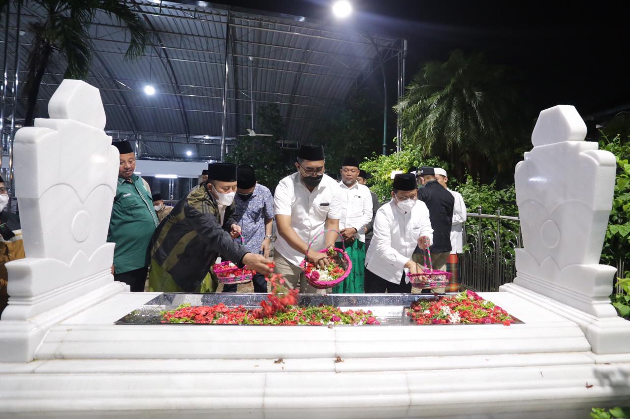 ”Bulan Rajab (dalam kalender Islam) ini adalah bulan yang penuh keberkahan dan makbul, tentu kita ziarah ke makam-makam. Hajat-hajat kita, kita sampaikan kepada Allah SWT melalui barokah para wali, memohon pertolongan kepada Allah agar seluruh perjuangan ini dilancarkan oleh Allah SWT,” ujar Gus Muhaimin setelah menuntaskan rangkaian ziarah Wali Songo di Makam Sunan Ampel Raden Rahmat Surabaya, Jawa Timur, Kamis (10/2/2022) dini hari.