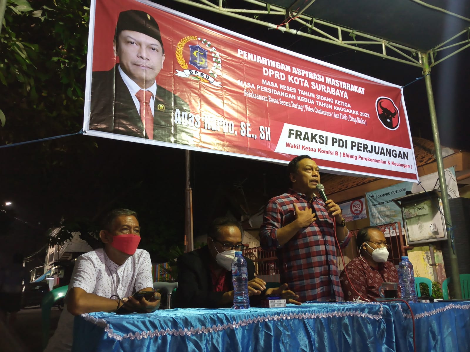 JURNALBERITA.ID – SURABAYA, Wakil Ketua Komisi B DPRD Surabaya, Anas Karno melakukan reses pertama, Masa Reses Tahun Sidang Ketiga, Masa Persidangan Kedua Tahun Anggaran 2022, dengan menyapa warga Menur pada Senin malam (14/02/2022).