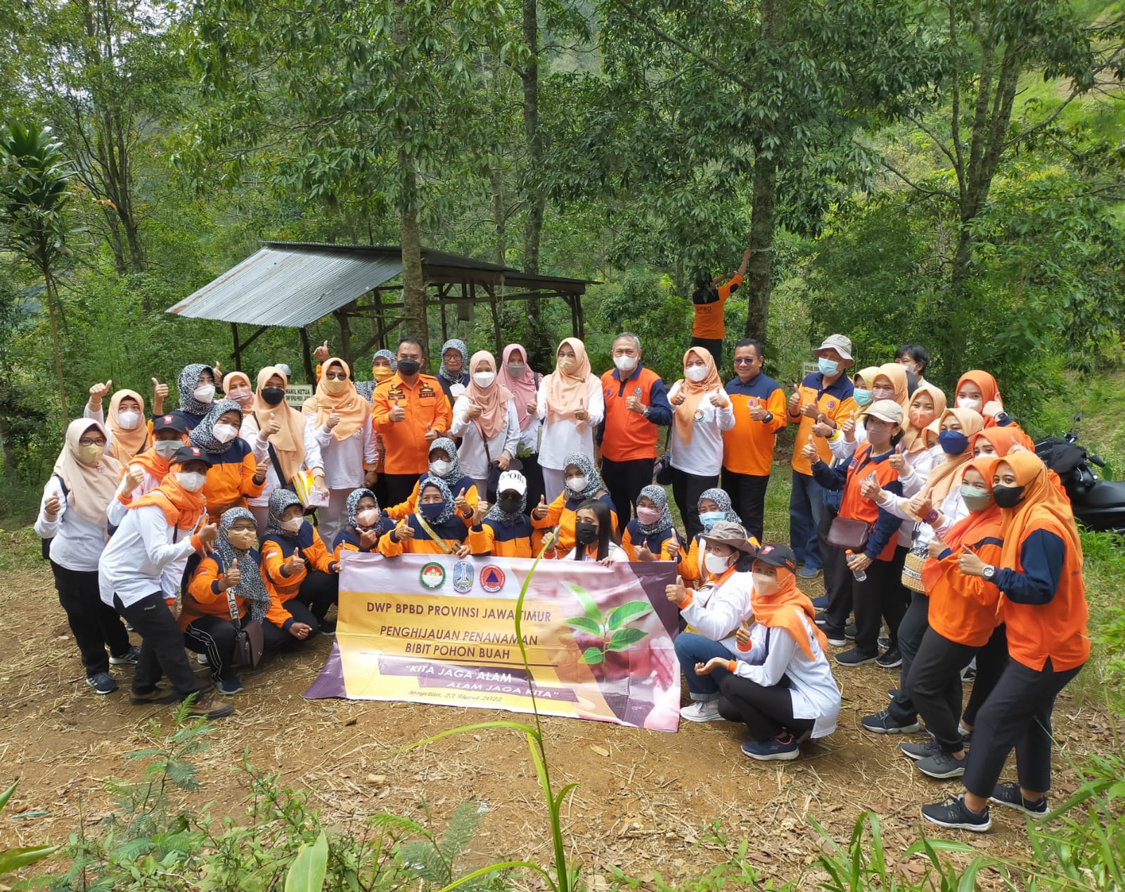 JURNALBERITA.ID, SURABAYA-Sebagai respon atas arahan Presiden Jokowi saat Rakornas PB soal mitigasi berbasis vegetasi, hari ini, Rabu (23/3/2022), BPBD Jatim melangsungkan aksi tanam pohon dengan menggandeng berbagai komunitas di area wisata di Dusun Wonomulyo, Desa Genilangit Kec. Poncol, Kab. Magetan.