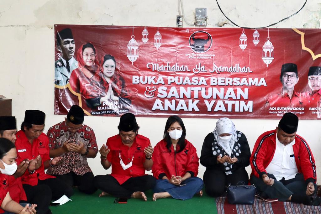 Kader PDIP Surabaya berdoa bersama sebelum acara buka puasa dengan anak panti asuhan Yayasan Nyai Walidah