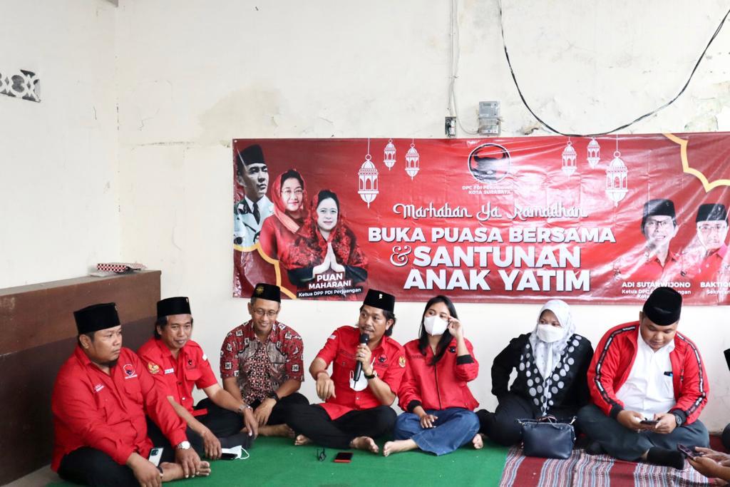 Kebagian Budi Leksono dan beberapa kader PDIP Surabaya dalam acara buka puasa bersama dan pemberian santunan anak panti asuhan Yayasan Nyai Walidah, Dupak Bandarejo