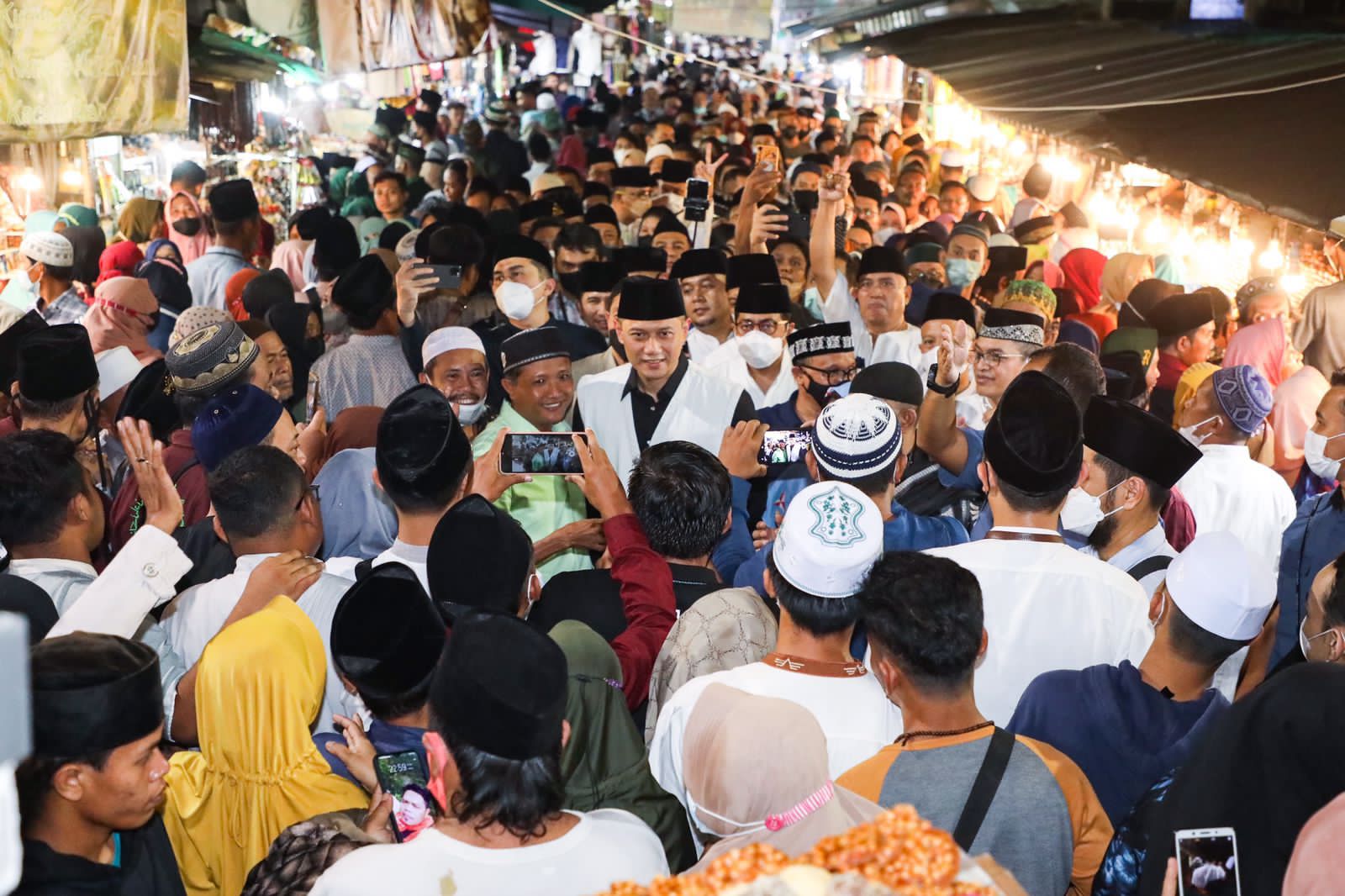 Tampil mengenakan kemeja hitam berbalut rompi putih, bersarung dan berpeci, AHY datang pada malam tanggal 21 Ramadhan atau yang populer disebut Selikuran. Ini salah satu malam yang ditunggu, sehingga ribuan peziarah dari Surabaya dan sekitarnya berduyun-duyun memenuhi kompleks Makam dan Masjid Agung Sunan Ampel.