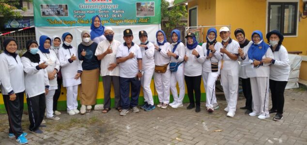Para anggota komunitas PORPI Gunung Anyar Surabaya sambil berolahraga serta peduli anak yatim dan duafa