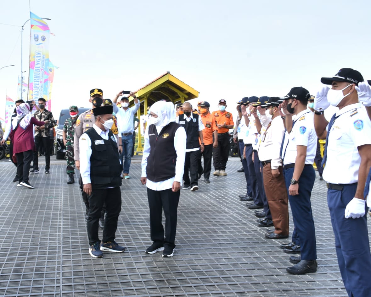 JURNALBERITA.ID,SURABAYA-Gubernur Jawa Timur Khofifah Indar Parawansa meninjau arus mudik lebaran di Pelabuhan Jangkar Kab. Situbondo, Rabu (27/4/2022).