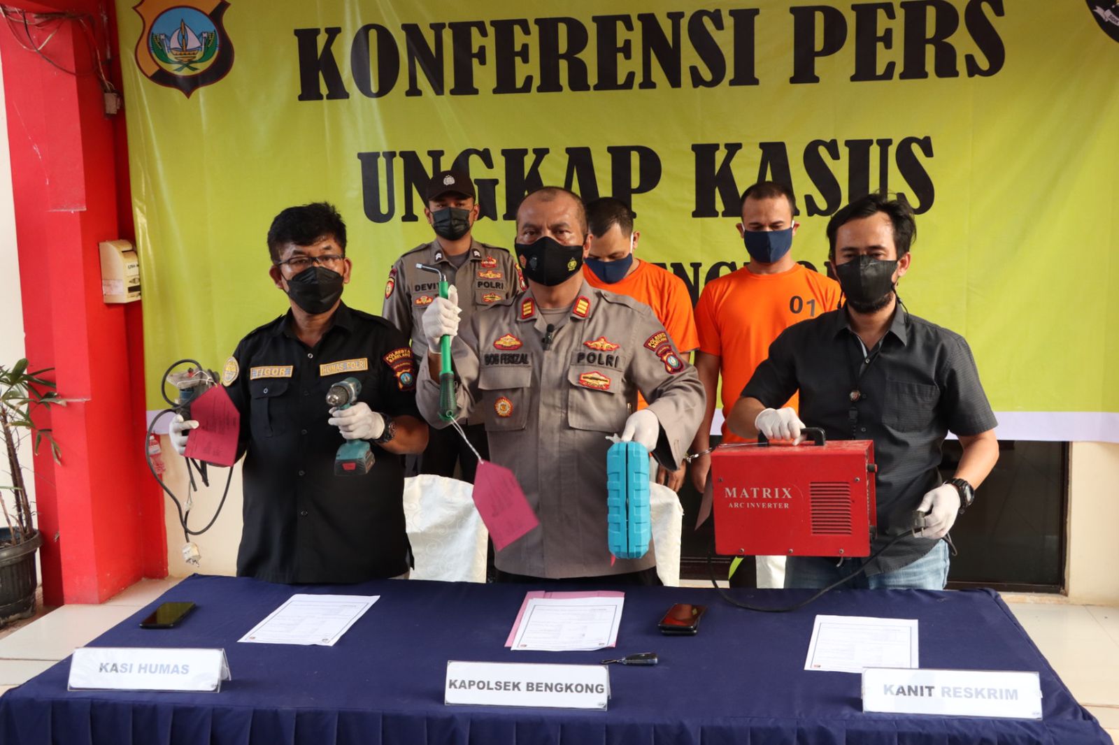 JURNALBERITA.ID – BATAM, Kapolsek Bengkong AKP Bob Ferizal, S.Sos menggelar Konferensi Pers Ungkap Kasus Tindak Pidana Pencurian dengan Pemberatan yang di dampingi oleh Kasi Humas AKP Tigor Sidabariba, SH, serta Kanit Reskrim Polsek Bengkong Iptu Rio Ardian, SH bertempat di Mapolsek Bengkong. Jumat (13/05/2022)