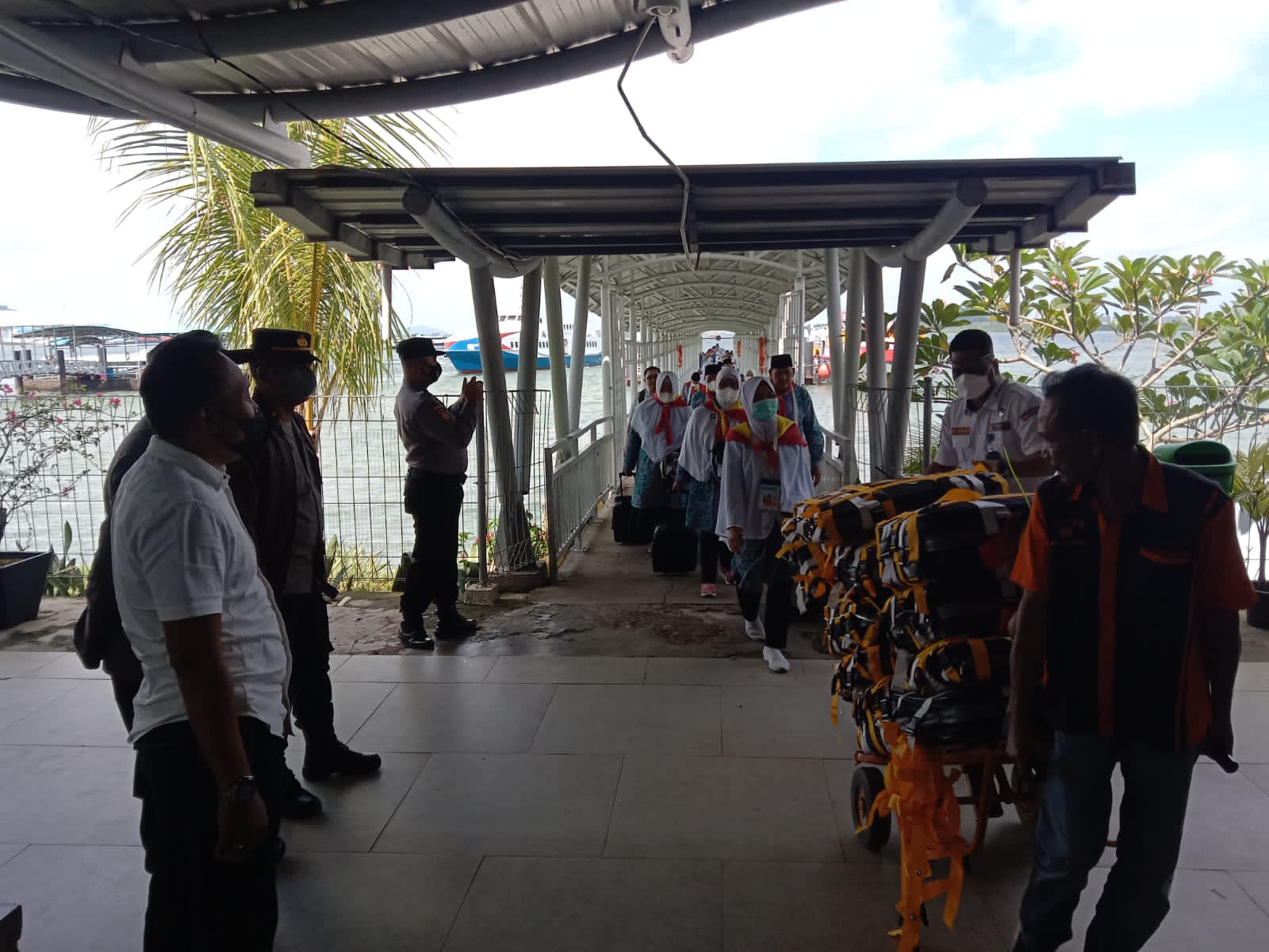 Pengamanan calon jamaah haji yang berasal dari Kabupaten Tanjung Balai Karimun ini tiba di pelabuhan Domestik sekupang dengan menggunakan Kapal MV Mikonatalia 99.