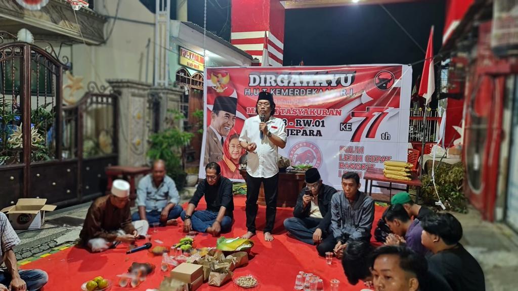 Gelar acara tirakatan HUT RI tahun ini yang dilaksanakan pada Selasa malam (16/08/2022) dengan rangkaian acara doa dan tasyakuran atas kemerdekaan RI ke 77 tahun dilanjutkan dengan sambutan wakil rakyat dari fraksi PDIP, Buleks serta ramah tamah antar warga kampung Jepara Surabaya.