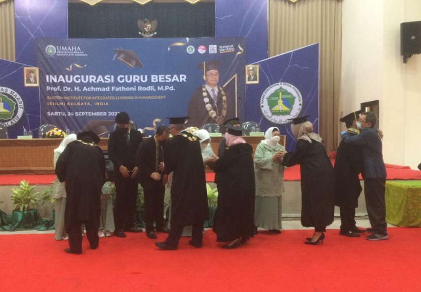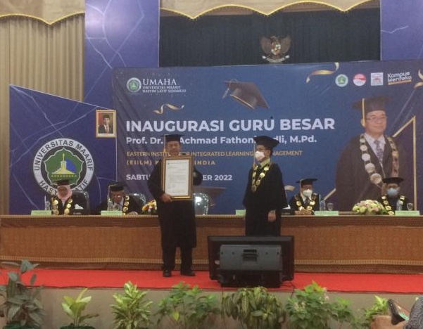 Penobatan gelar profesor ini diberikan oleh Eastern Institute for Integrate Learning in Management (EIILM) KOLKATA India sebagai guru besar manajemen pendidikan pada Prof Dr Achmad Fathoni Rodli, M.Pd.