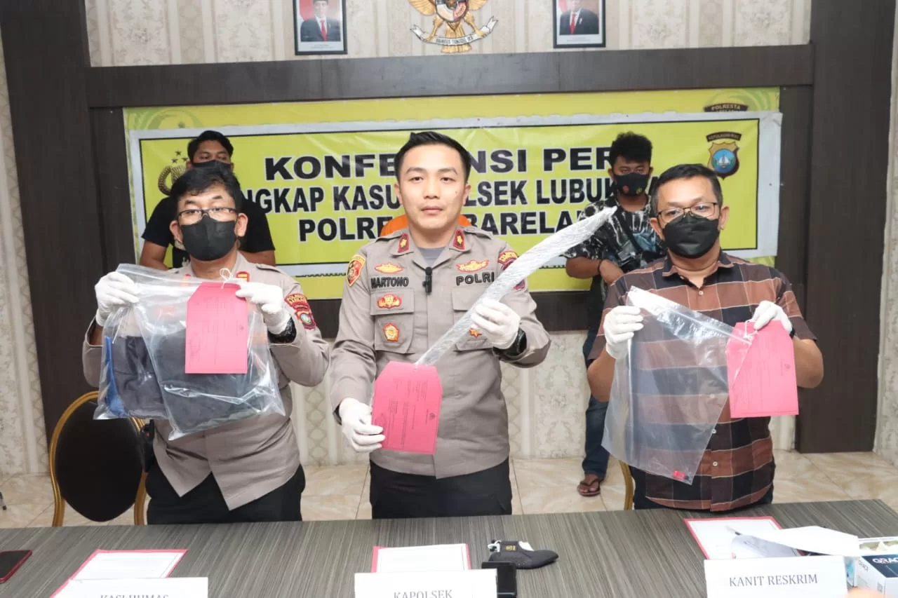 JURNALBERITA.ID — BATAM, Kapolsek Lubuk Baja Kompol Budi Hartono, menggelar Konferensi Pers ungkap pelaku pembunuhan berencana yang didamping Kasihumas Polresta Barelang AKP Tigor Sidabariba, serta Kanit Reskrim Polsek Lubuk Baja Iptu Thetio Nardiyanto, di Mapolsek Lubuk Baja.