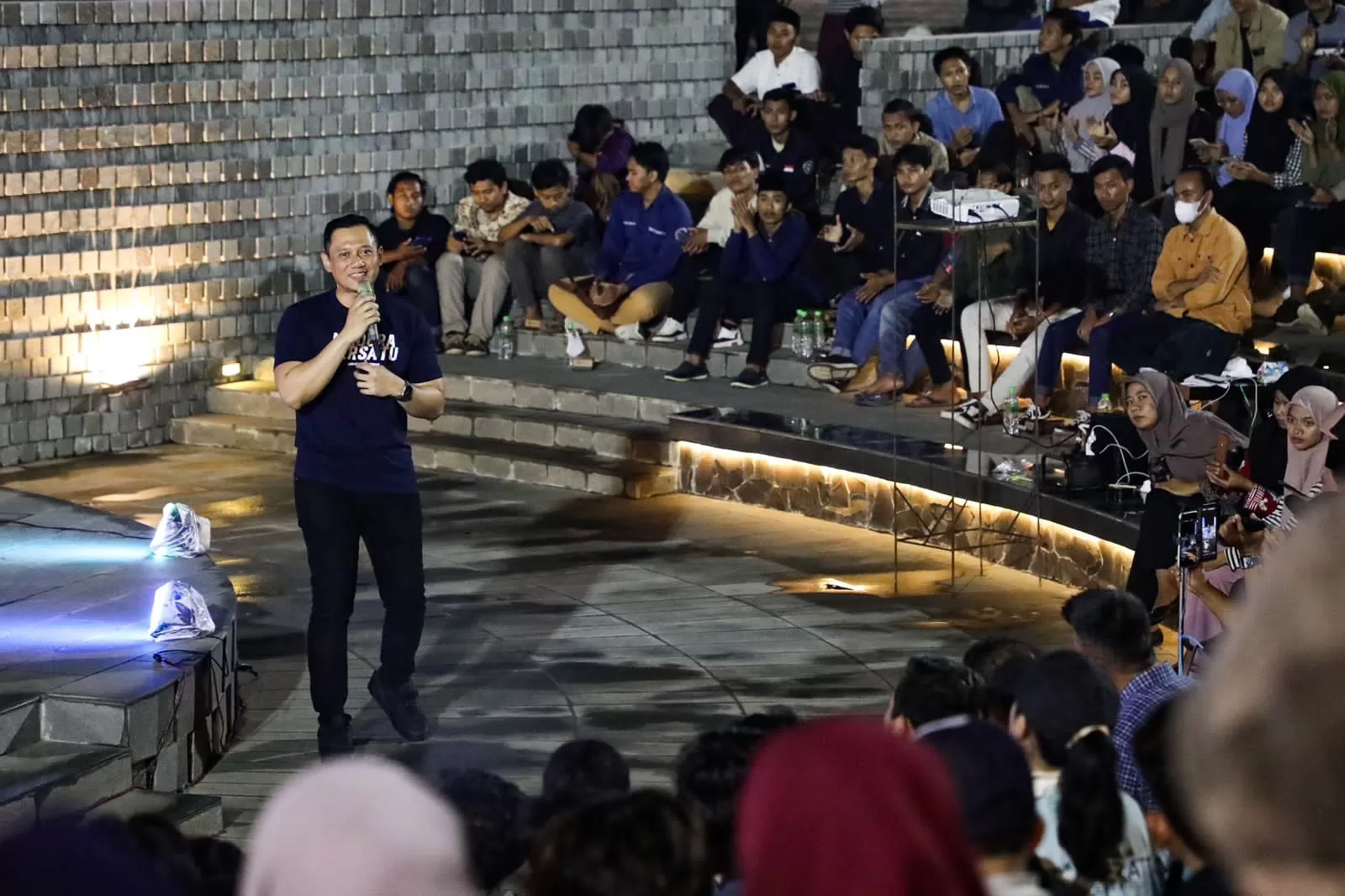 Ratusan mahasiswa dan mahasiswi memadati amphitheater yang terletak di halaman kampus. Dialog di udara terbuka berlangsung hangat. Lampion yang sengaja diterbangkan untuk menyambut kedatangan AHY pun menambah semarak suasana malam itu.