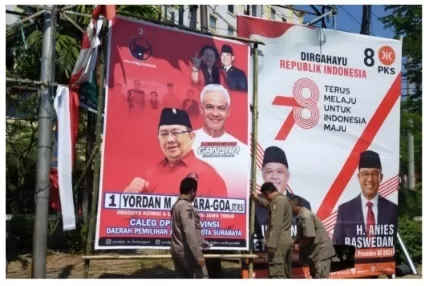 “Sesuai surat dari Bawaslu kita melakukan Penertiban baliho partai politik,” ujar Muhammad Januar Rizal, Camat Pabean Cantian Surabaya, Rabu (23/08/2023)